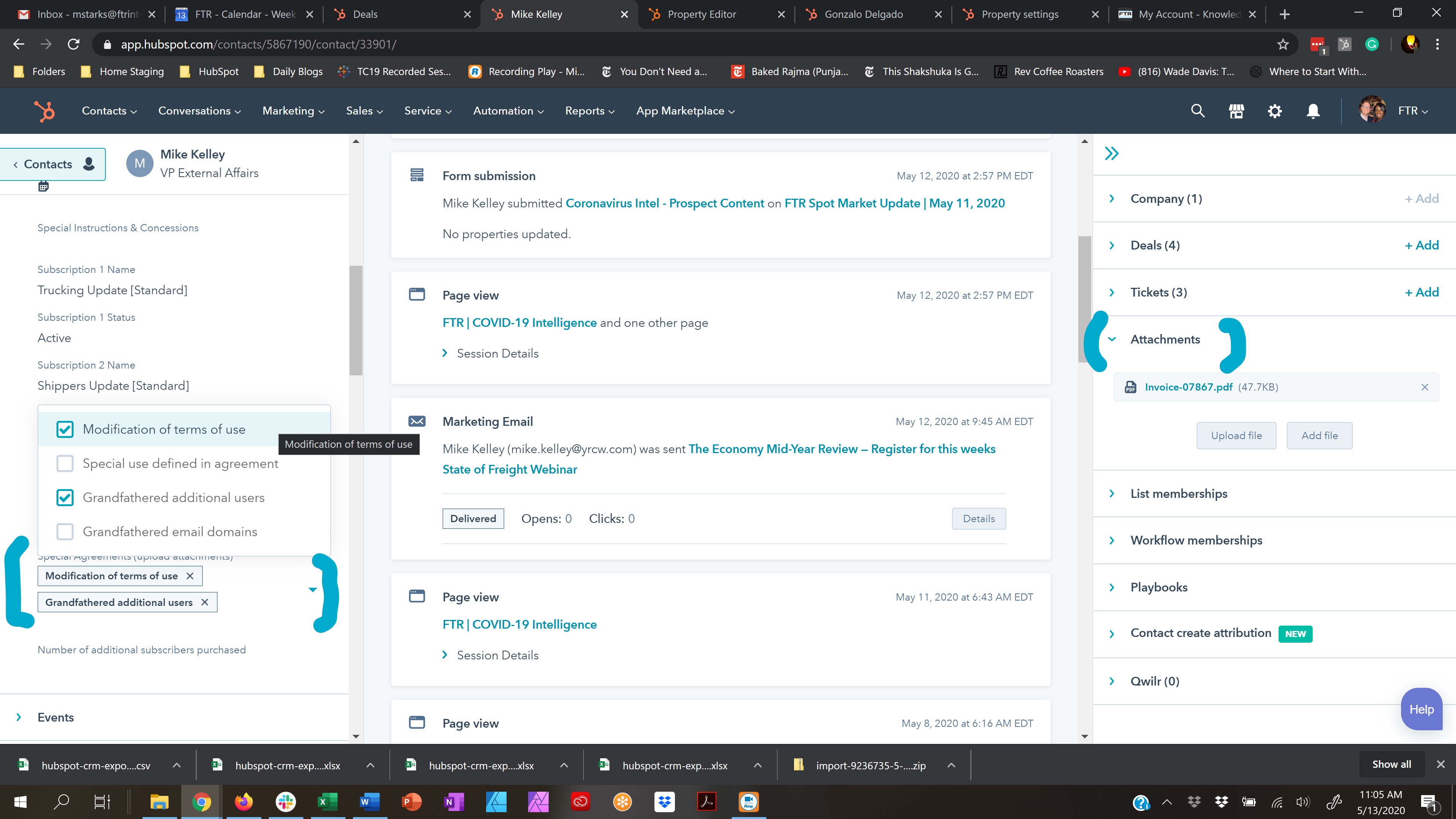 The agreement documents can be found in the right sidebar, under Attachments. To upload a document click on Upload file. Select the agreement and click Open.